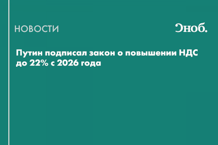 Путин подписал закон о повышении НДС до 22% с 2026 года