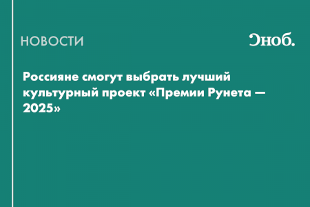 Россияне смогут выбрать лучший культурный проект «Премии Рунета — 2025»