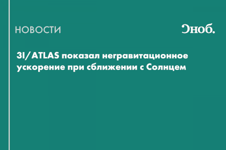 3I/ATLAS показал негравитационное ускорение при сближении с Солнцем