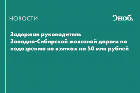 Задержан руководитель Западно-Сибирской железной дороги по подозрению во взятках на 50 млн рублей