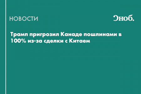 Трамп пригрозил Канаде пошлинами в 100% из-за сделки с Китаем