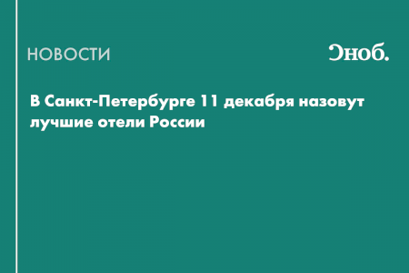 В Санкт-Петербурге 11 декабря назовут лучшие отели России
