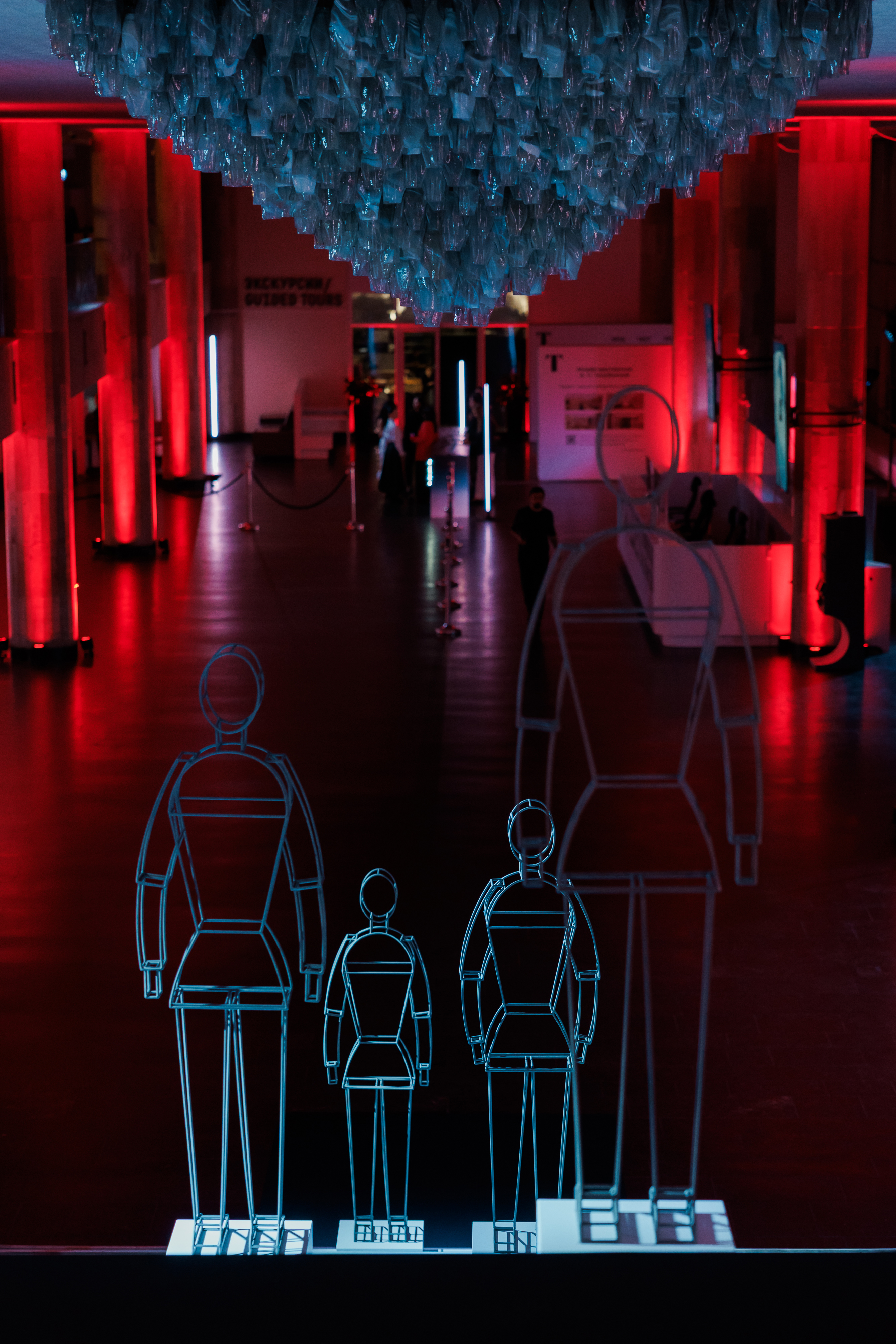 Третьяковская галерея как локация позволила объединить моду и искусство в одном пространстве. В фойе музея расположилась оригинальная инсталляция из супрематических фигур — она визуально связала повседневный мир с постоянной экспозицией галереи. Полотно ткани дизайнера, холст художника, ковровая дорожка, подиум, лента товаров — центральный объект вобрал в себя целый калейдоскоп образов.