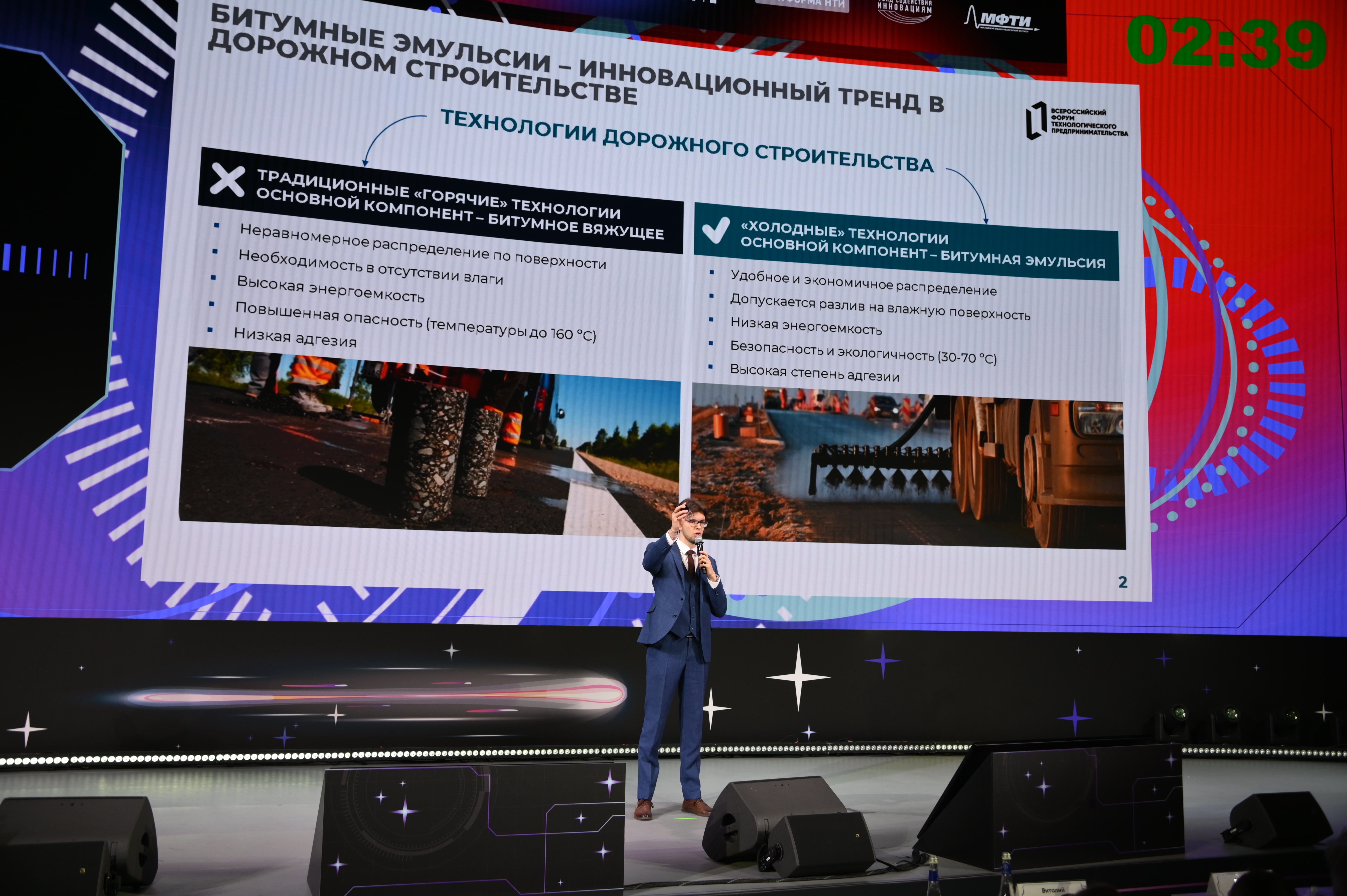 В десятку лучших вошёл стартап Emultechnologies Андрея Горячева из Казанского национального исследовательского технологического университета, который разрабатывает отечественный эмульгатор для битумных эмульсий.