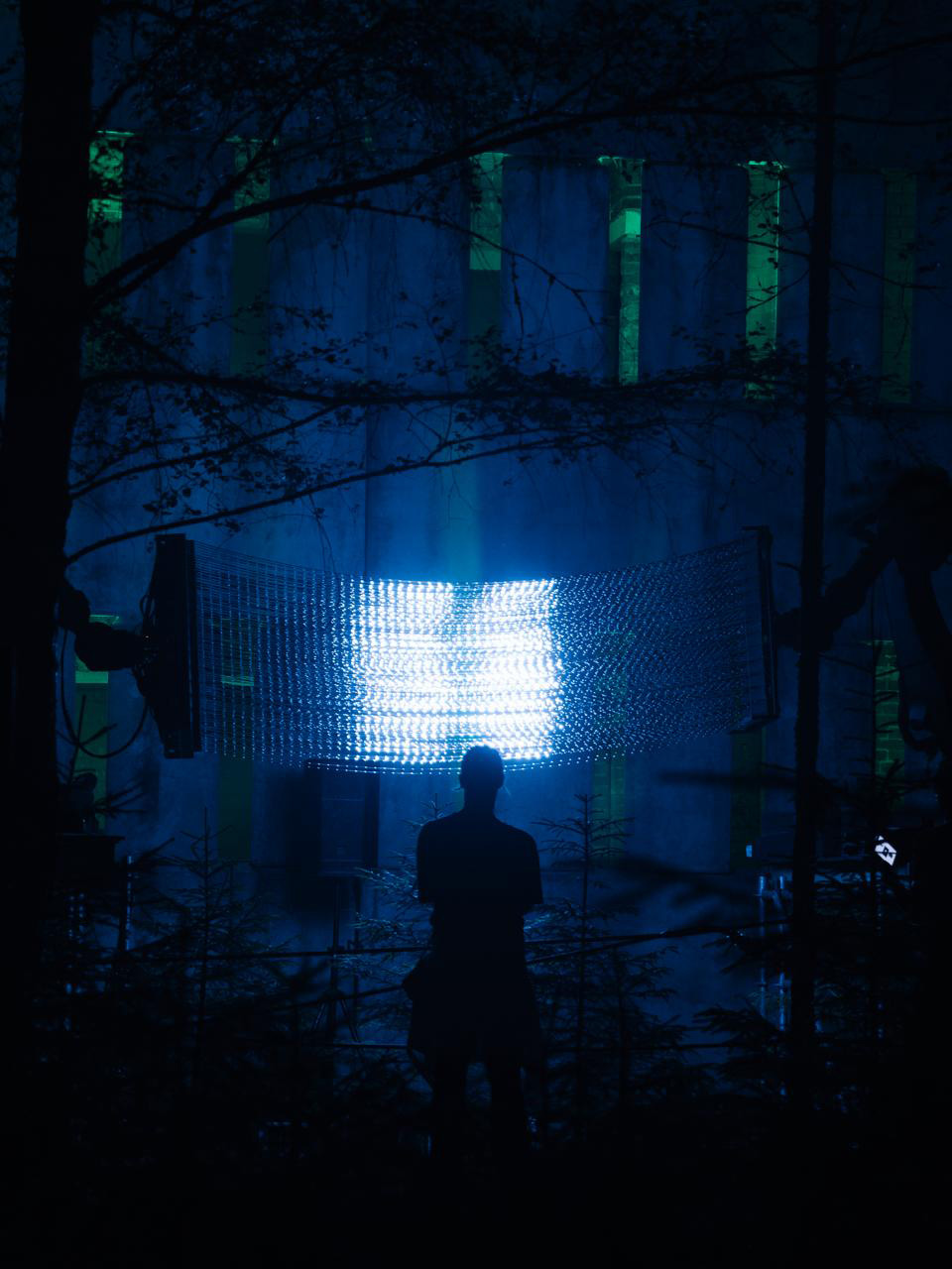Dreamlaser — одна из самых заметных российских студий, работающих с крупными медиаинсталляциями и фестивальными проектами. «Layers» — многоярусная инсталляция, которая постоянно меняется и собирается заново. Конструкция состоит из отдельных слоёв, каждый из которых работает как самостоятельная форма, но вместе они складываются в единое целое. Свет непрерывно движется по ярусам, подчёркивая их различие и связь друг с другом. Зритель может управлять объектом через планшет, меняя цвет и конфигурацию слоёв. Этот эффект особенно чувствуется на контрасте с масштабом: вес инсталляции — около 20 тонн, а её поверхность собрана из 240 квадратных метров светодиодной сетки.