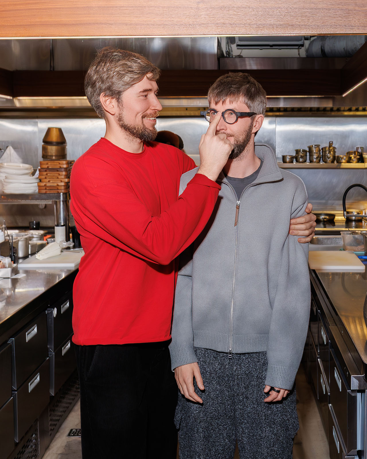 Все наши споры — рабочие, продуктивные, и мы умеем уступать. Например, если вопрос касается эстетики, то я могу спокойно уступить. Если Дима хочет украсить фасад стогом сена, да пожалуйста, если есть такой творческий порыв. (Смеются.) А если мы говорим про финансы, то в этом вопросе Дима уступает мне. С точки зрения вкуса у нас всегда есть компромисс. То есть мы всегда выдерживаем санитарную норму качества, а дальше начинается вкусовщина. Например, я не ем острое и кислое, а Дима периодически ест, поэтому может сказать: «Давай здесь больше кислого добавим?» Ок.