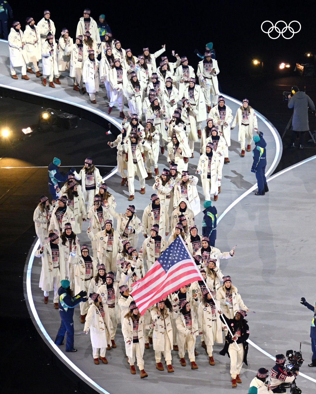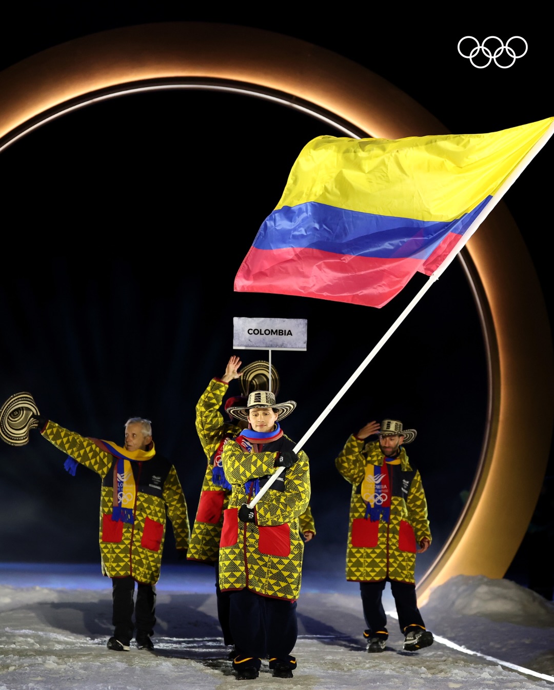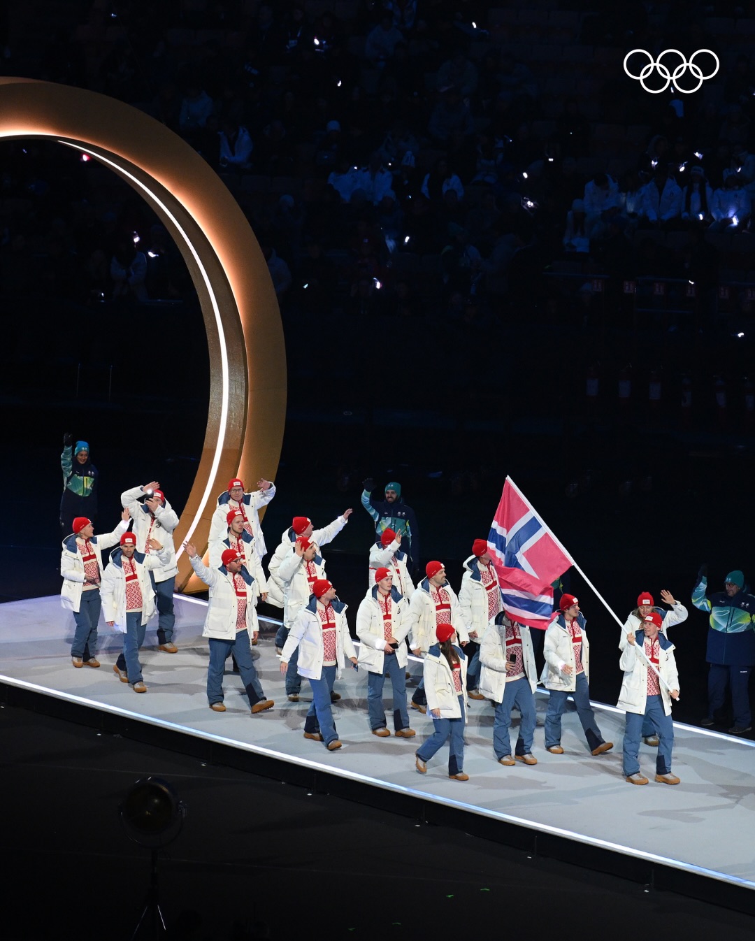 Парад спортсменов также прошёл в новом формате. Делегации выходили одновременно в четырёх городах, при этом каждая сборная могла задействовать двух знаменосцев — по одному на разных площадках. Такой подход позволил включить в церемонию команды, задействованные на удалённых горных объектах. Сборная Италии завершила парад.