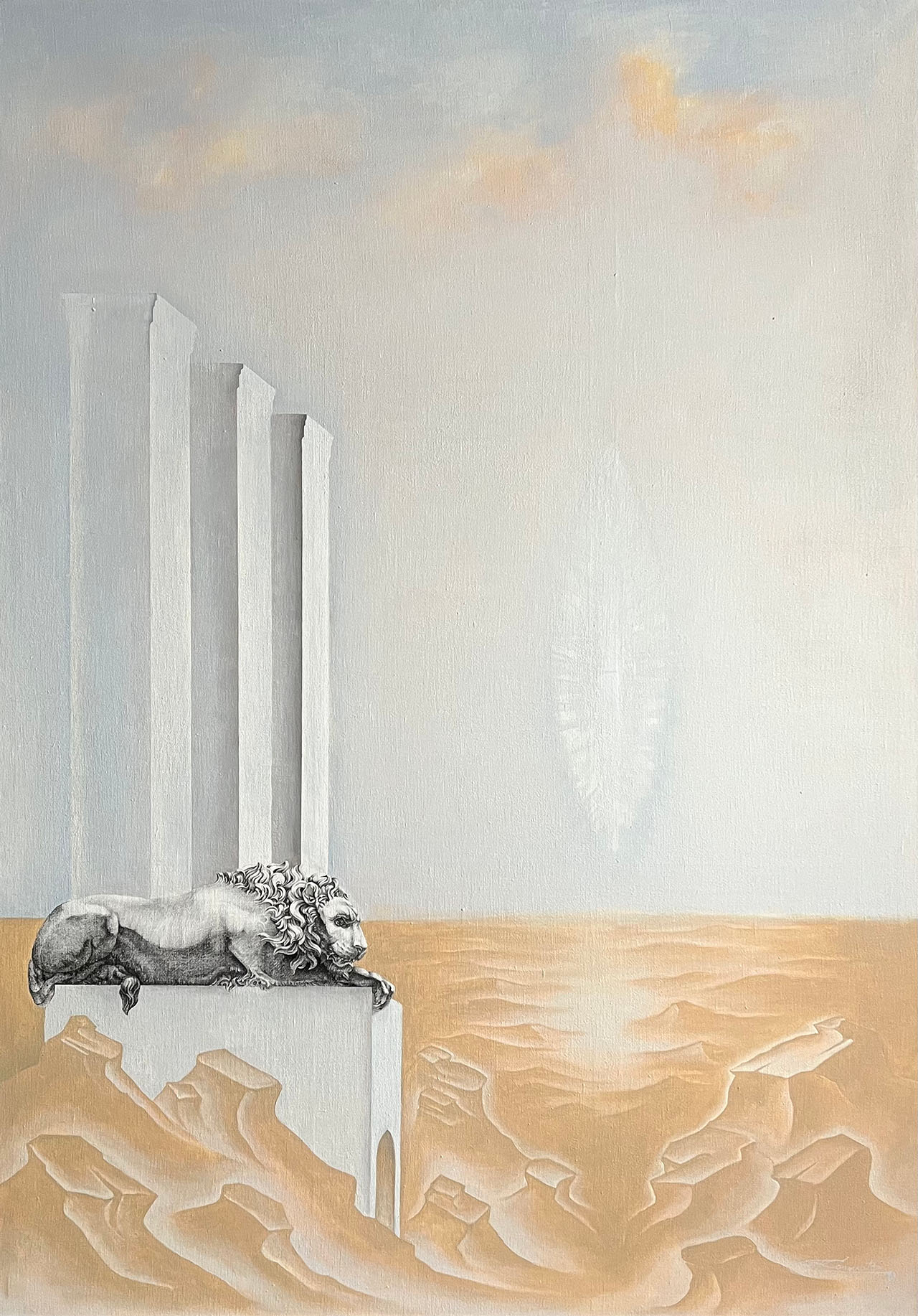 Художник переводит глубинные смыслы библейских сюжетов в яркие визуальные образы — насыщенные духовным символизмом и неожиданной пластикой. Его произведения выстроены как взаимодействие: не через прямой рассказ, а через работу формы, цвета и внутренней композиции.