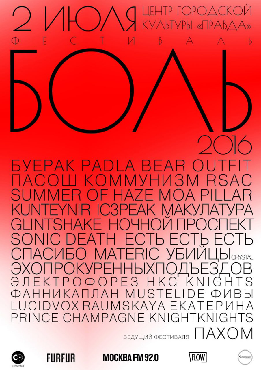 Мы сидели с моим товарищем, питерским промоутером Мишей Тумановым, пили чаёк на кухне и обсуждали музыкальный феномен тренда 1980-х в современной России и засилье коротких, чётких названий групп. Я пересказал ему свой разговор с женщиной, занимающейся подбором групп к Roskilde Festival, которая является фанаткой группы «Кино» и ещё в 1989-м делала их гиг в Копенгагене. Она сказала мне, что англоязычные российские группы смешны и неинтересны. А ей нужны группы с короткими русскими названиями, играющие хмурую русскоязычную музыку, ассоциирующуюся с Россией. Я назвал ей «Утро» и «Труд». Она одобрительно кивнула. Мы в шутку решили, что нужно сделать мини-фестиваль с лайнапом «Труд», «Сруб», «Утро». Прикинули, что все группы имеют в названии четыре буквы и что название фестиваля тоже должно быть из четырёх букв. «Боль» пришла сама собой.