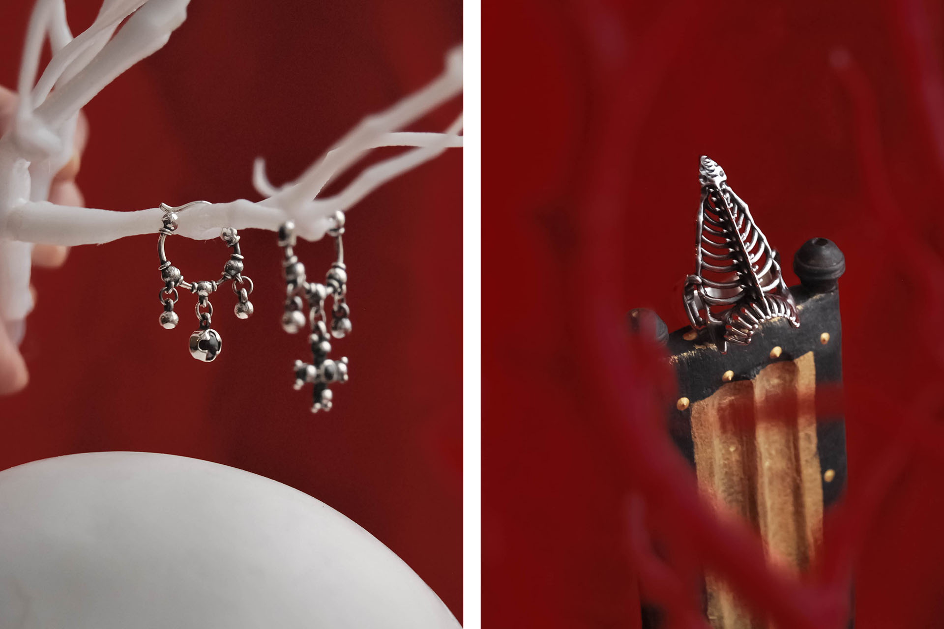 Бренд «Морок Jewelry» из Санкт-Петербурга вдохновляется символами славянской культуры и мрачной эстетикой. В их украшениях сочетаются традиции и изящество тёмной красоты. Ювелир Евгения Иванова создаёт изделия, объединяющие яркую выразительность и мрачный символизм. В новой коллекции специально к фестивалю представлены кольца с надписями: «лихо», «тьма», «хтонь» и «чудо».