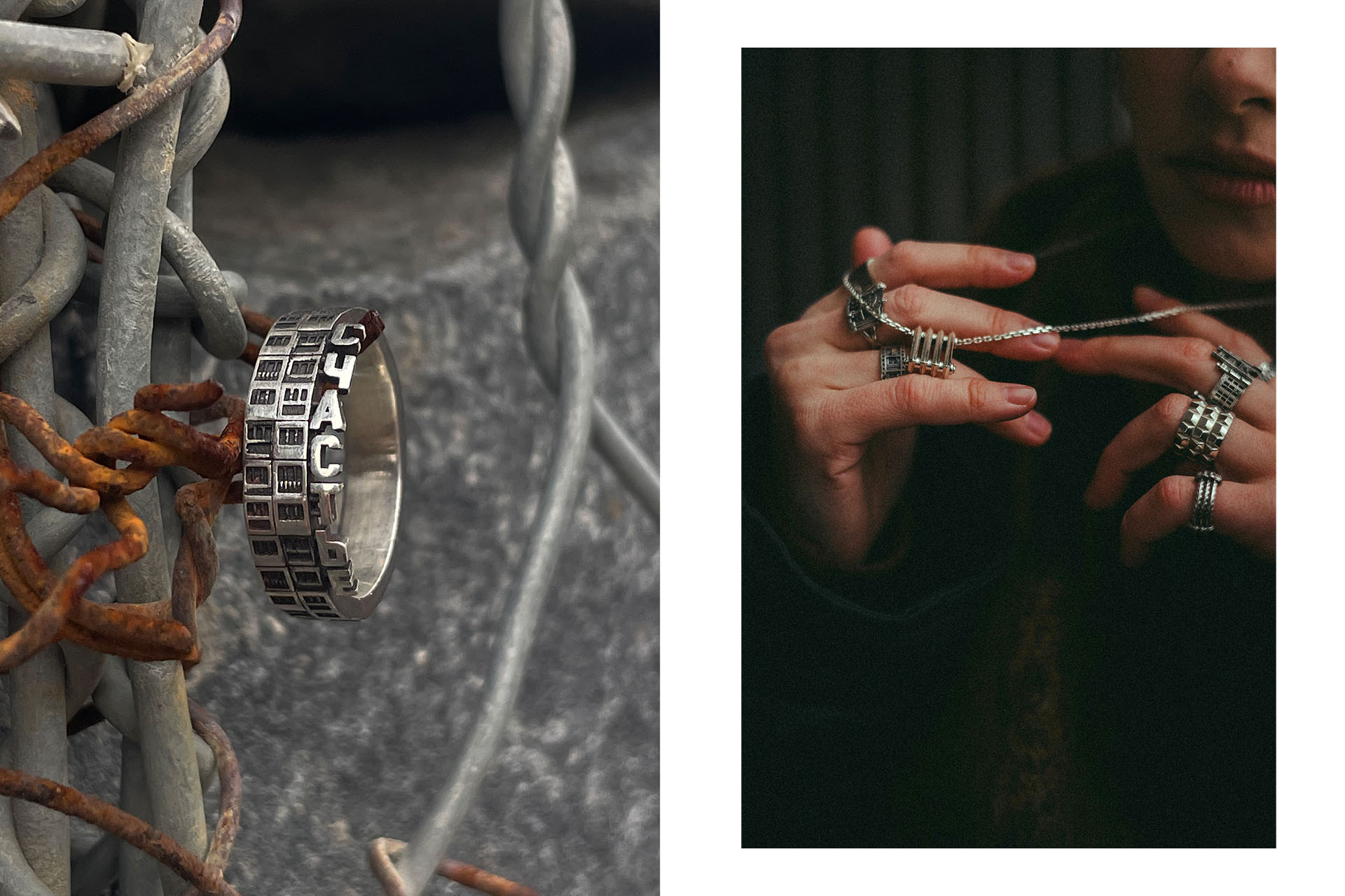 Бренд современных ювелирных изделий в эстетике промышленного урбанизма, который играет с чувством ностальгии. Это история — о настоящем и искреннем, о том, что затерялось в детстве. Специально к теме фестиваля автор Владлена Суетина создала эксклюзивное архитектурное кольцо с цветными граффити, а также печатки и подвески с муралами.