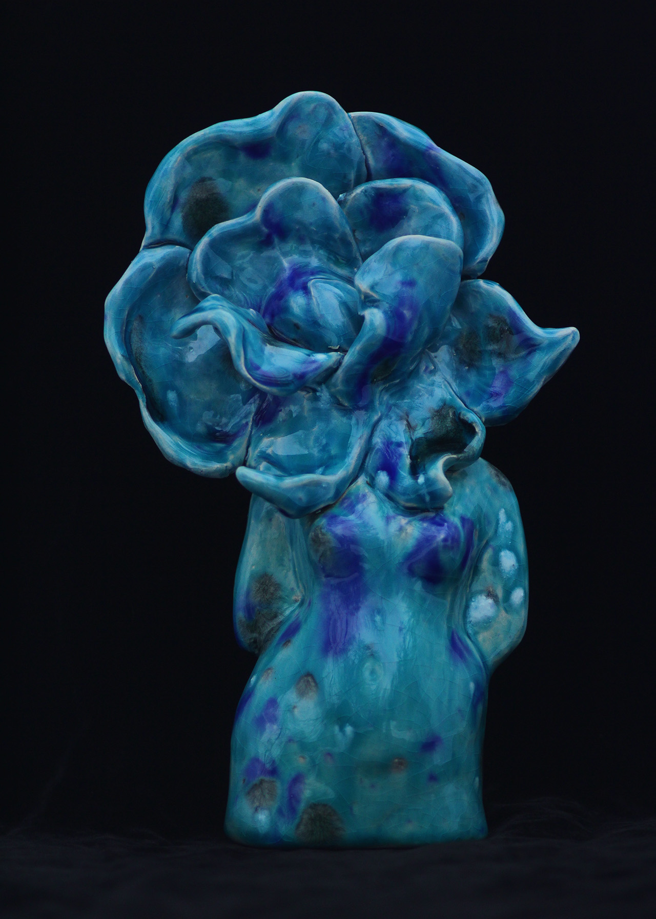 Серия керамических скульптур фантасмагорически объединяет женский силуэт и цветок фиалки. Асимметричное туловище в позе хиазма отсылает к архаичным скульптурам женского тела — устойчивым, почти тотемным фигурам, в которых пластика подчинена ритму и внутренней силе.