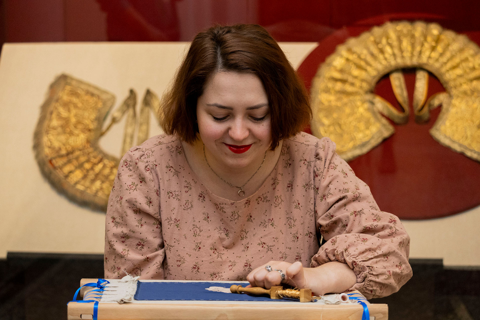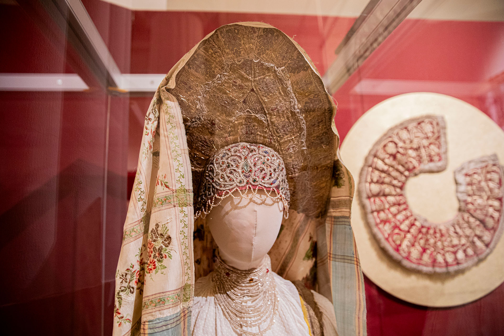 «Мы постарались включить в экспозицию не только вышитые золотной нитью вещи, но и золототканые экспонаты. Наша выставка — это проект о красоте, непростом искусстве шитья, возводившем в народной культуре в ранг высокого, ценного и прекрасного религиозные атрибуты, традиционные одежды, предметы, достойные лучших даров», — делится ведущий научный сотрудник РЭМ и куратор проекта Елена Мадлевская.
