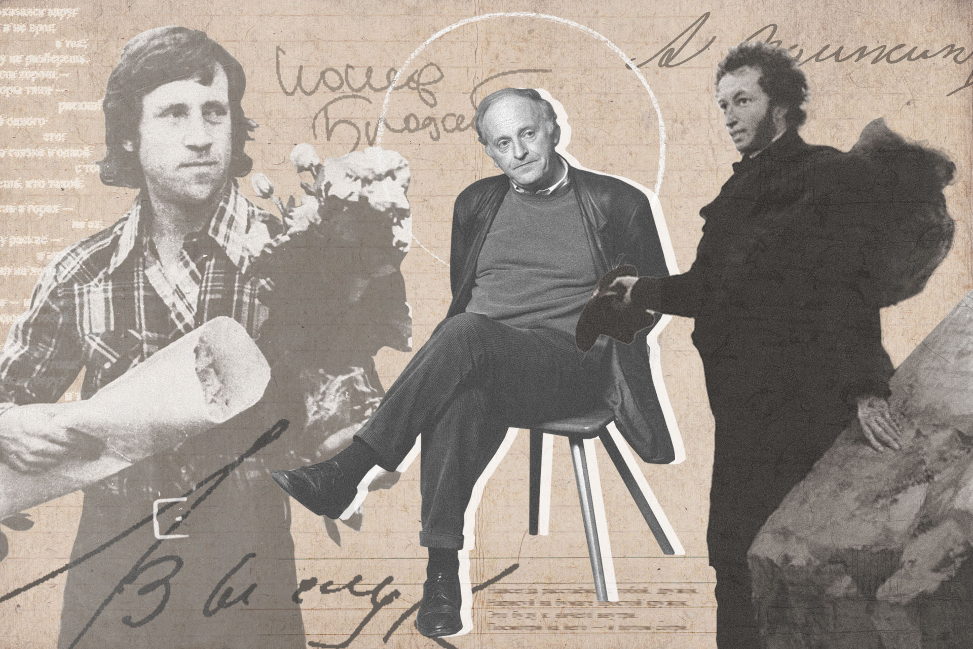 От Бродского можно перекинуть строчку к Владимиру Высоцкому, вот и фамилии их рифмуются. Когда Высоцкий был в Нью-Йорке в августе 1977 года, два поэта встретились дома у Михаила Барышникова. Да, тут некоторая сложность. По воспоминаниям Бродского, это было именно в квартире Барышникова, а по воспоминаниям Марины Влади, они сначала сидели в кафе в Гринвич-Виллидж, а потом пошли к Бродскому домой. Впрочем, такое расхождение простительно, встреч было несколько. Главное, что Бродский подарил Высоцкому свою книгу и подписал её — «Большому русскому поэту Володе Высоцкому». Для Высоцкого это было высшей степенью признания, он с гордостью говорил своему другу скульптору Михаилу Шемякину — «Бродский назвал меня поэтом»! И потом Бродский часто говорил, что работа Высоцкого с рифмой — это что-то феноменальное, а также — «Это гораздо лучше, чем всякие... Кирсанов или Маяковский, — я уже не говорю о более молодых людях, вроде Евтушенко и Вознесенского». Впрочем, тут могла иметь место некоторая обида на номенклатурных советских современников. Обида чисто поэтическая, разумеется.