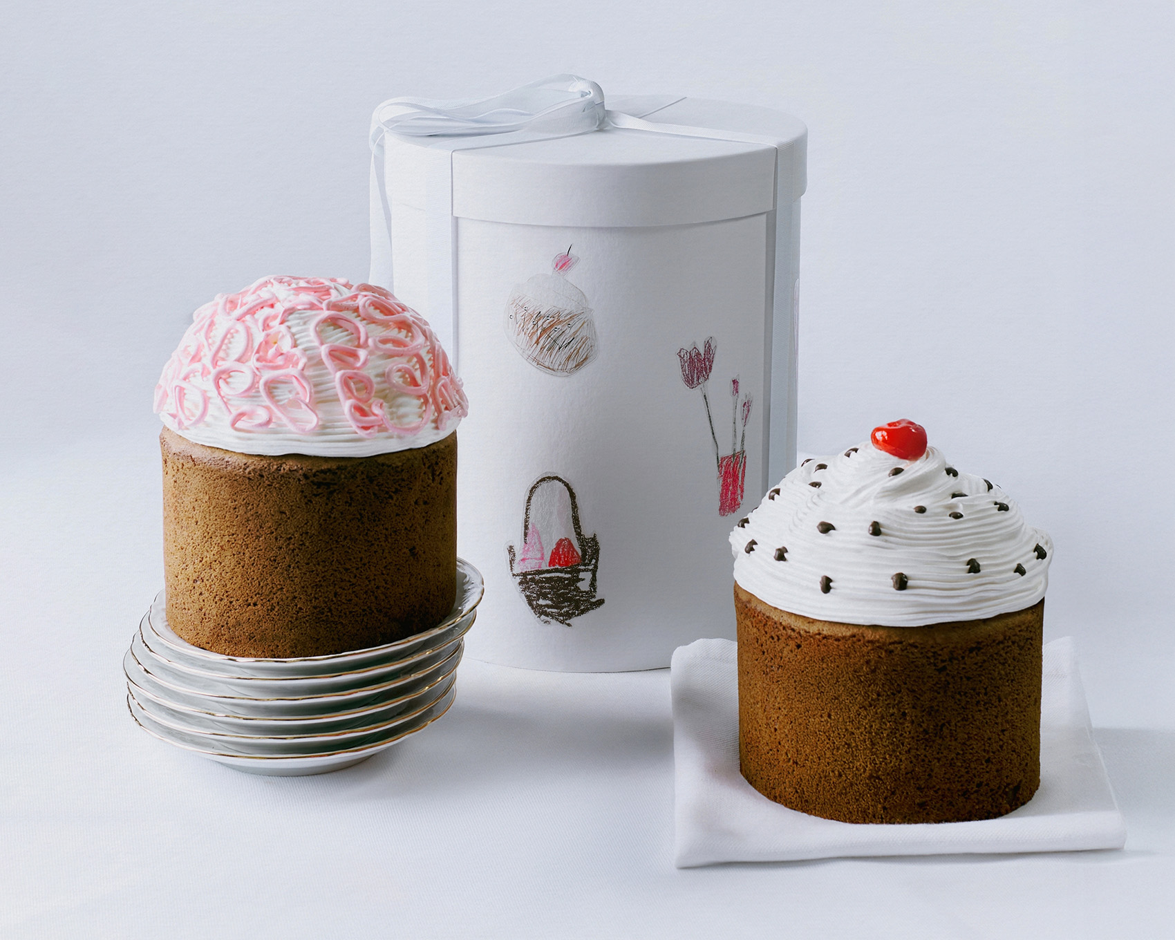 Рисунки для упаковки создали студенты фонда «Антон тут рядом», вдохновляясь образами из детства, а 10% с продажи каждого кулича будут переданы в фонд! Всего их три, и каждый с любимым детским вкусом: «Коровка» с варёной сгущёнкой и сладко-солёным гречишным попкорном, «Рот фронт» с вафлей и арахисом, «Юбилейное» — заварной крем и популярное печенье под обожжённой меренгой.