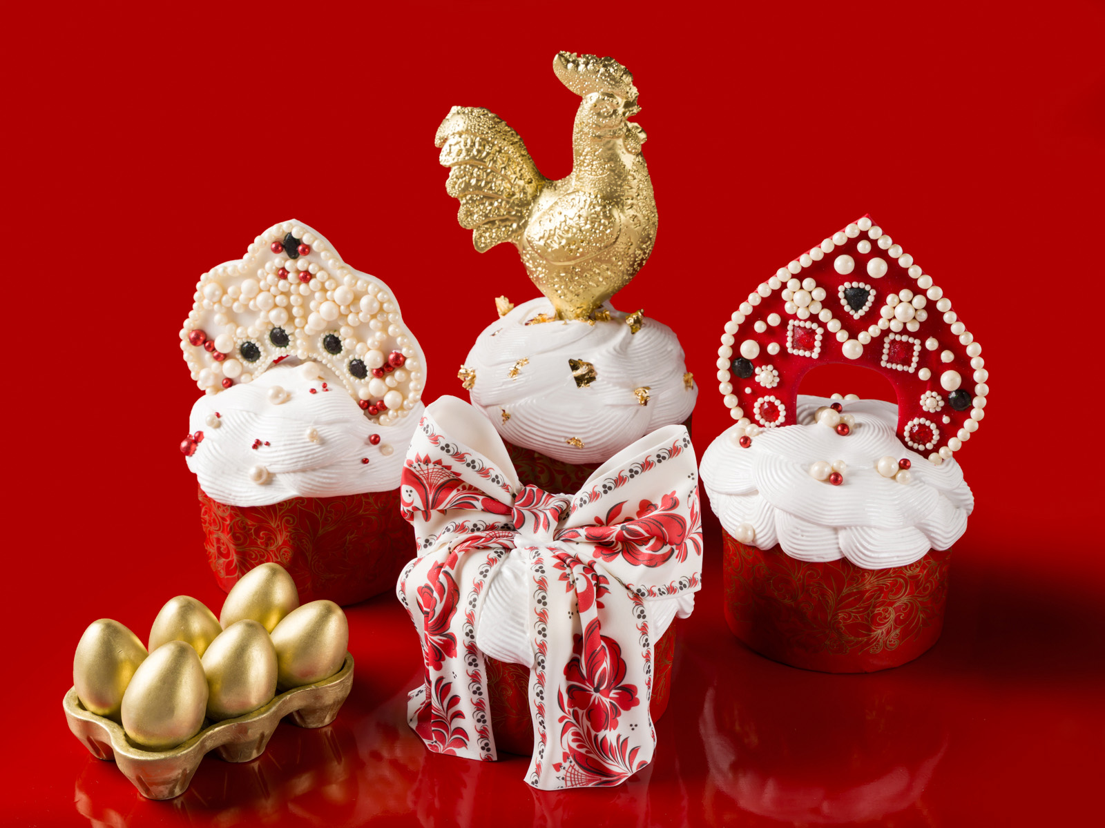 В гранд-кафе собирают всё нужное для гранд-Пасхи — кулич с золотым петушком, золотые шоколадные яйца в шоколадной упаковке, заварную творожную пасху с цитрусовыми корочками, орехами и ванилью в стиле Ламбет. Особенно нарядными у шеф-кондитера Дарьи Терешонок-Кожуховской получились куличи с тремя разными кокошниками. Каждая деталь кокошника съедобная: мастика, шоколад и мармелад, шоколадное кружево.