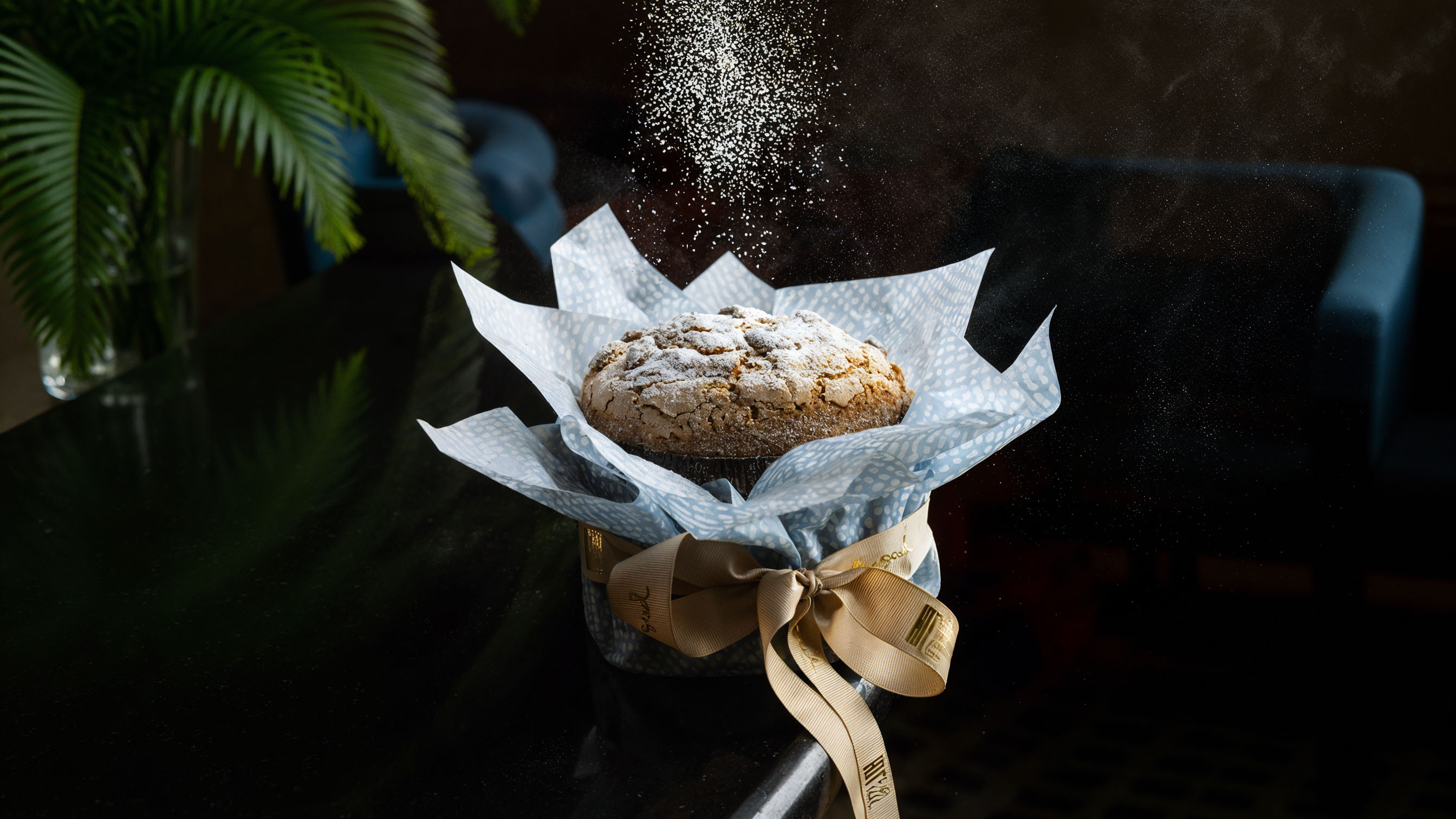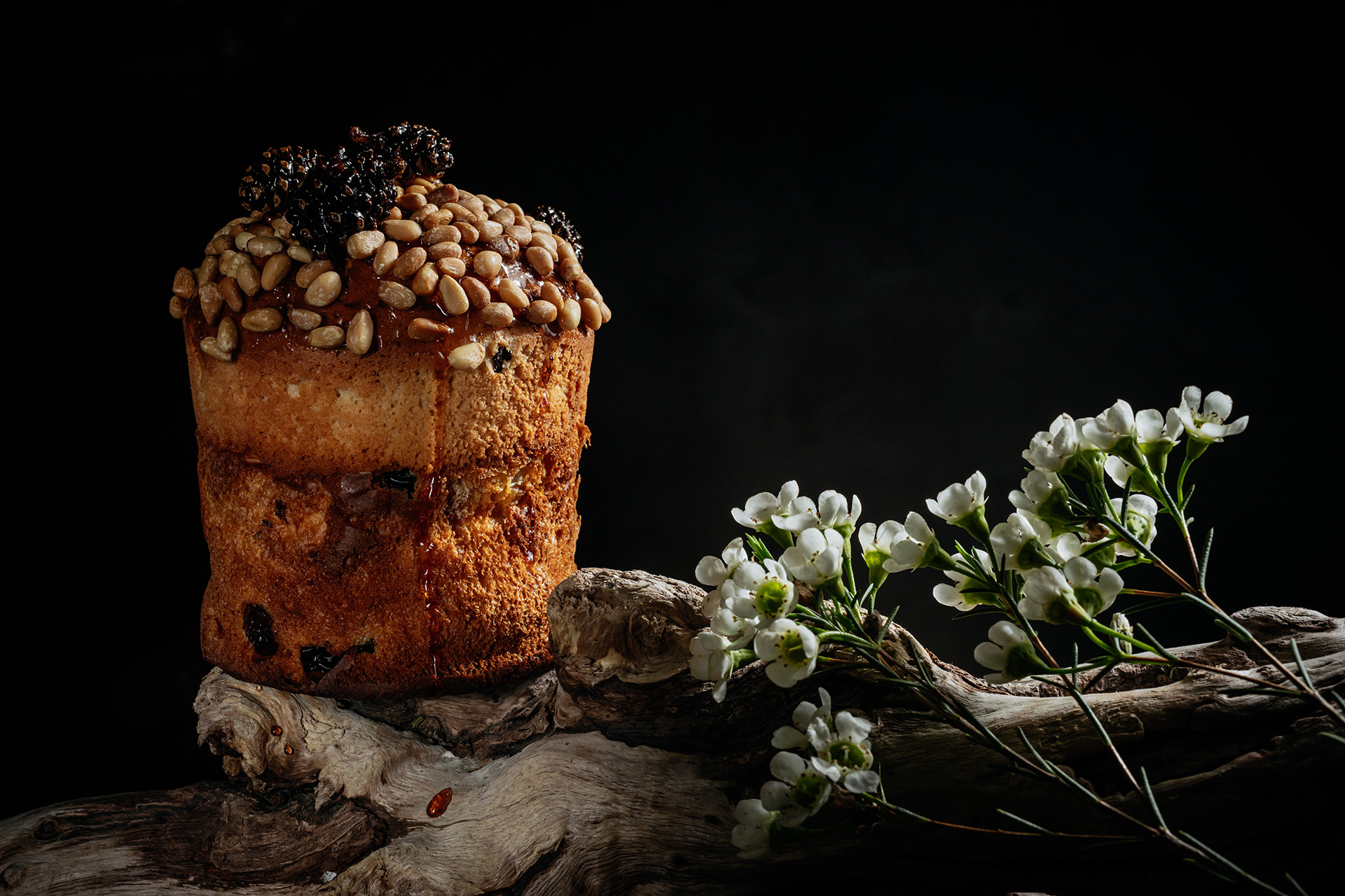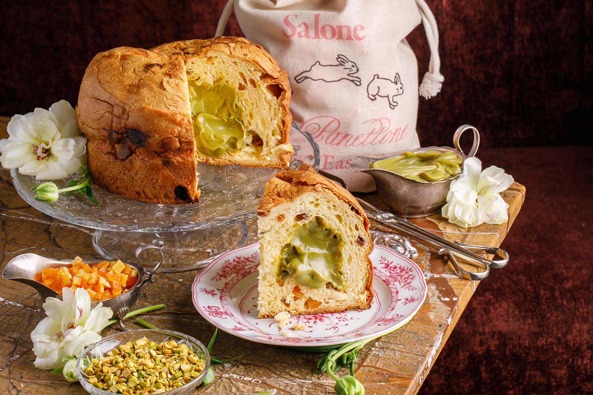 Рецепт фирменного панеттоне был привезён командой из Италии, процесс производства отличается трудоёмкостью, но вкус того стоит. Можно приобрестипанеттоне с кремом из белого шоколада и земляникой или панеттоне с фисташковым кремом, оба в фирменных подарочных мешочках.