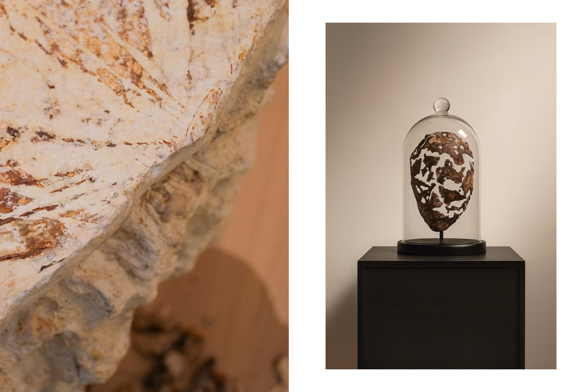 У нас абсолютно непредсказуемая текстура, которая появляется на изделии в процессе роста. Это похоже на мрамор или кольца столетнего дуба: она может быть светлее или темнее, но всегда в гамме теплого бежевого или шоколадного оттенков. Мы оформили эту непредсказуемость в свою фишку, ведь наши мастера работают в сотворчестве с природой, а не воюют с ней.